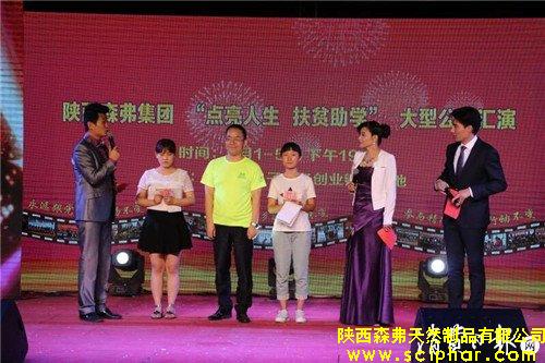 2016年,森弗公司出資300萬元,設(shè)立“森弗扶貧助學(xué)金”,在全省資助了1000名貧困大學(xué)生,幫助他們實現(xiàn)大學(xué)夢;舉辦“點亮人生,扶貧助學(xué)”大型文藝匯演,號召社會關(guān)注貧困大學(xué)生的求學(xué)路。同時,為商洛學(xué)院品學(xué)兼優(yōu)的困難大學(xué)生發(fā)放了“森弗愛心助學(xué)金”和“森弗愛心獎學(xué)金”,幫助困難學(xué)子完成學(xué)業(yè)。盛典上,森弗公司又啟動了新一輪的幫扶計劃,繼續(xù)資助1000名貧困學(xué)子,幫助他們實現(xiàn)求學(xué)夢。